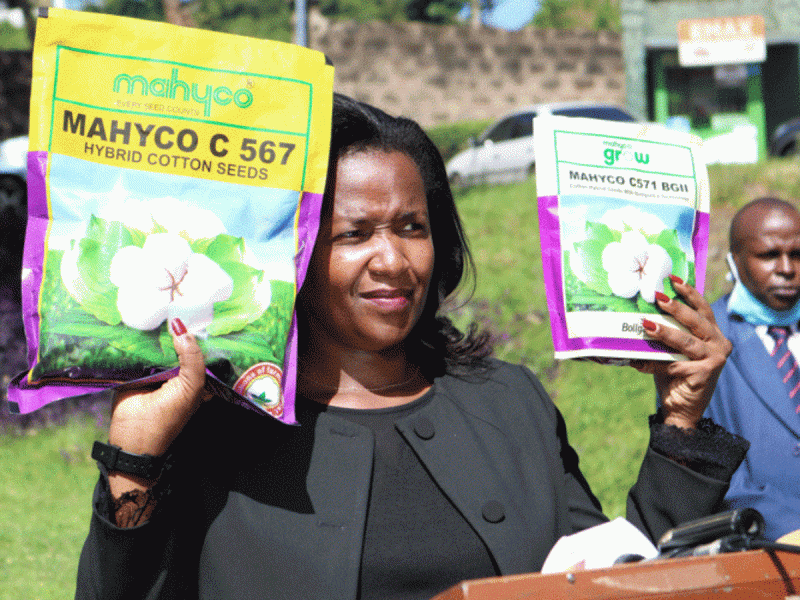 Agriculture CAS Anne Mukami displays Bt cotton seeds. Credit: Gerald Ithana/PD